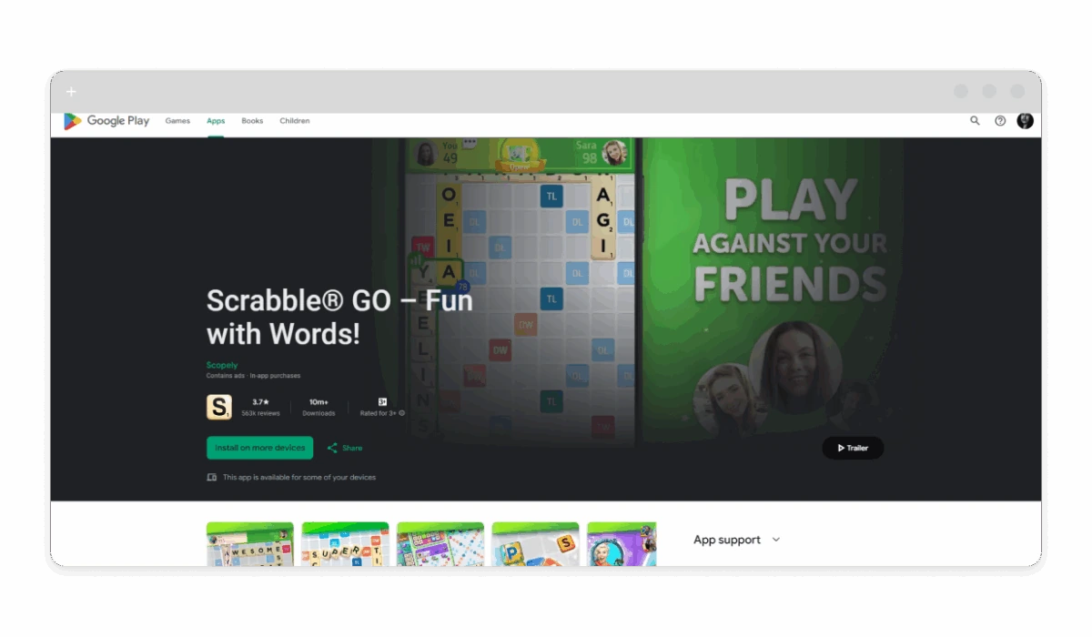 - Ad Status: Premium ($4.99/month) ad-free; Scrabble without ads.