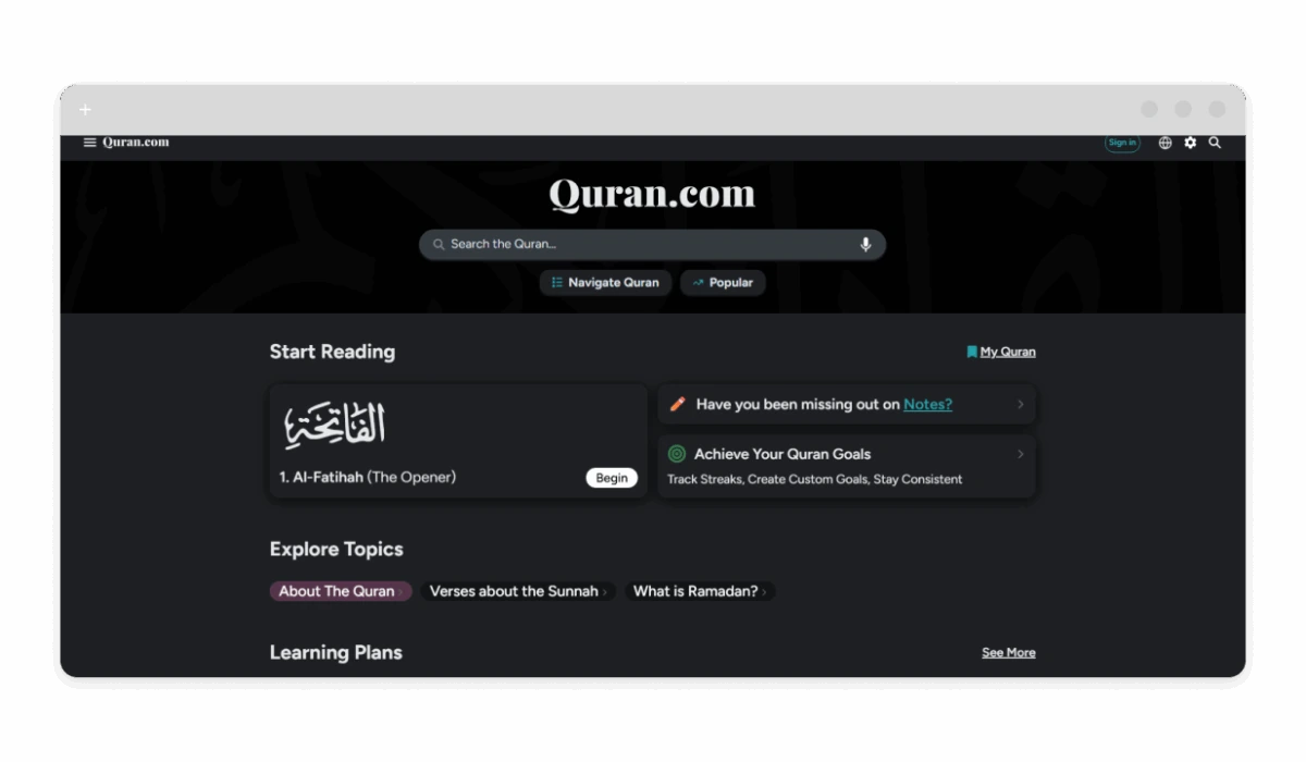 - Pros: High-quality recitations, multilingual. Cons: Interface basic.