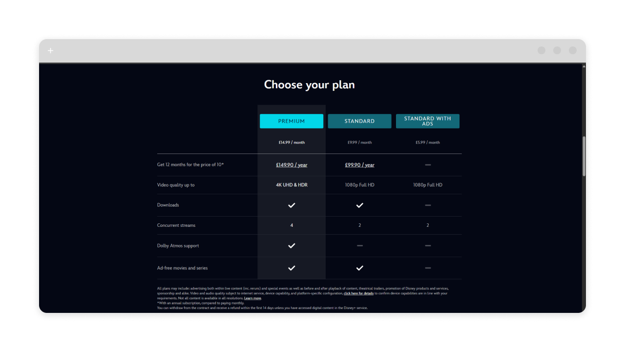 | Disney+ Premium (Ad-Free) | Uninterrupted streaming, 4K/HDR support, and offline downloads for on-the-go viewing. | No | $13.99 |