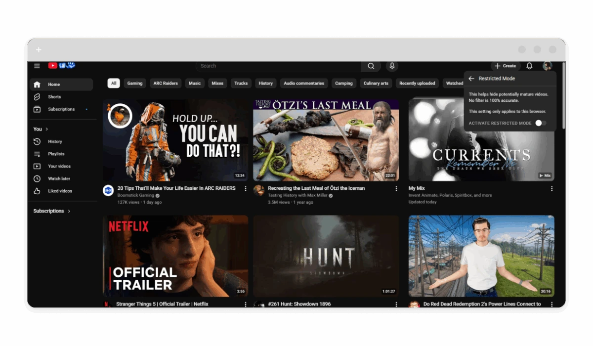 YouTube Restrict Mode