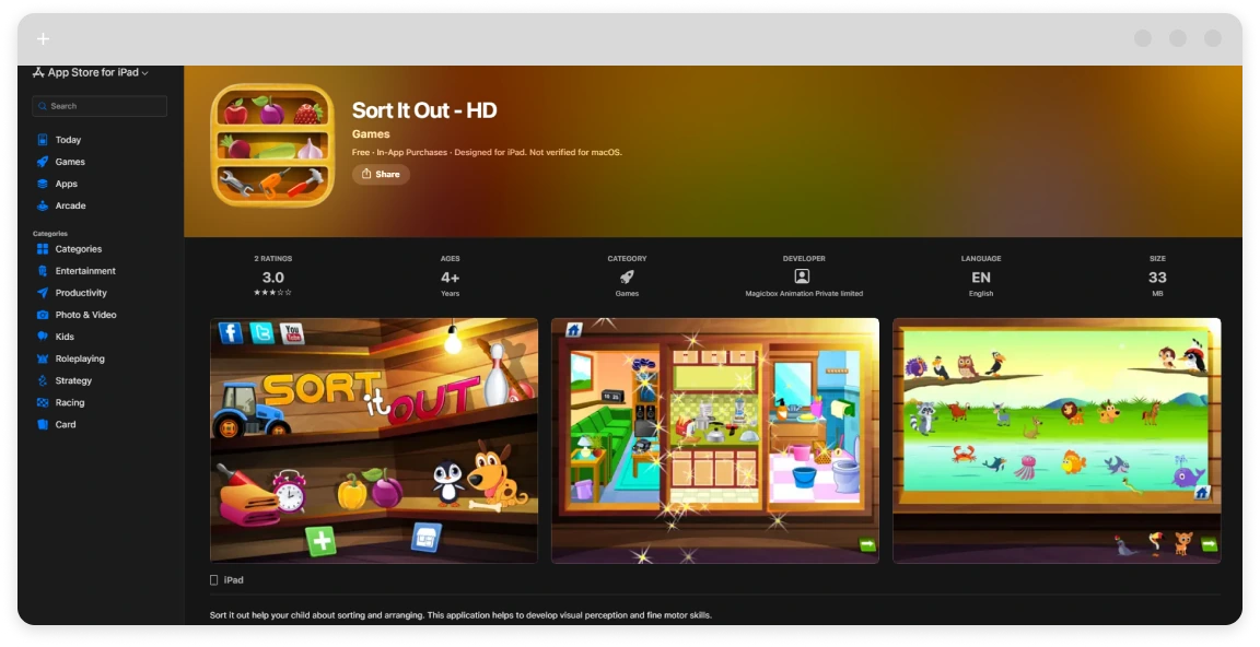 - Sort It Out – Everyday object sorting with cozy visuals