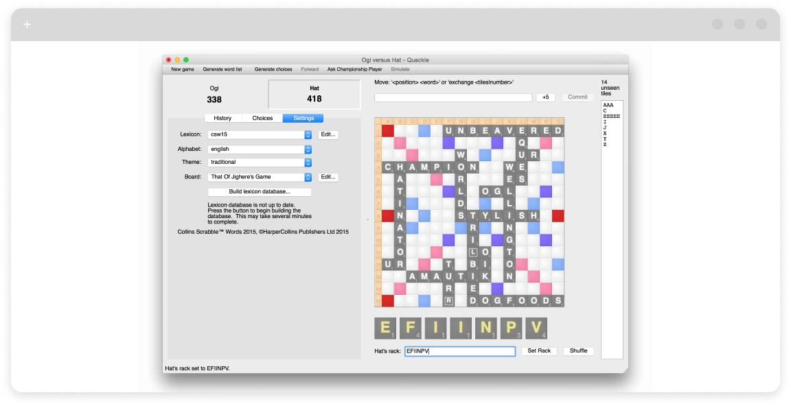For Scrabble enthusiasts and players who want to analyze their strategies, Quackle provides a deep dive into word play. With powerful AI and detailed analysis tools, it’s a great choice for serious players looking to hone their skills.