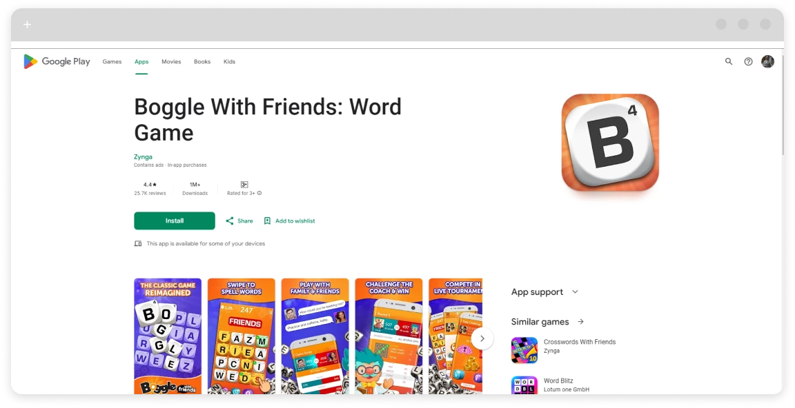 | Boggle With Friends | iOS, Android | Real-time word search for quick competitive play. | Lightning rounds, daily challenges. |