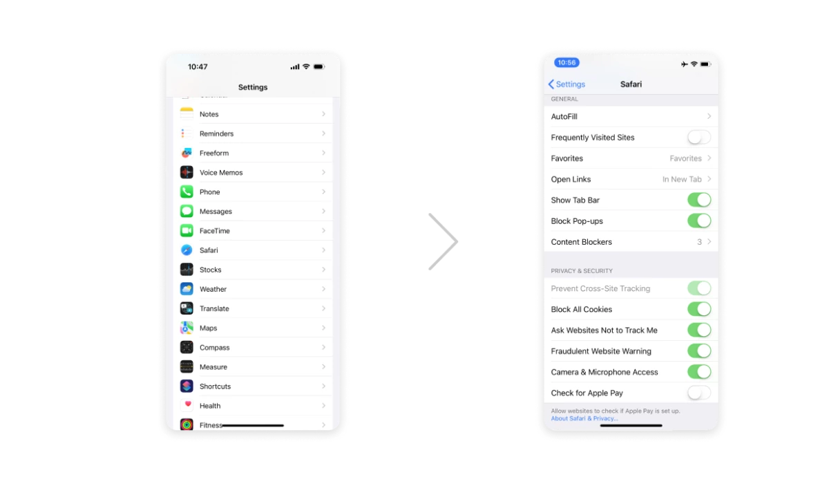 Here’s how to fix too many redirects on iPhone in Safari settings: